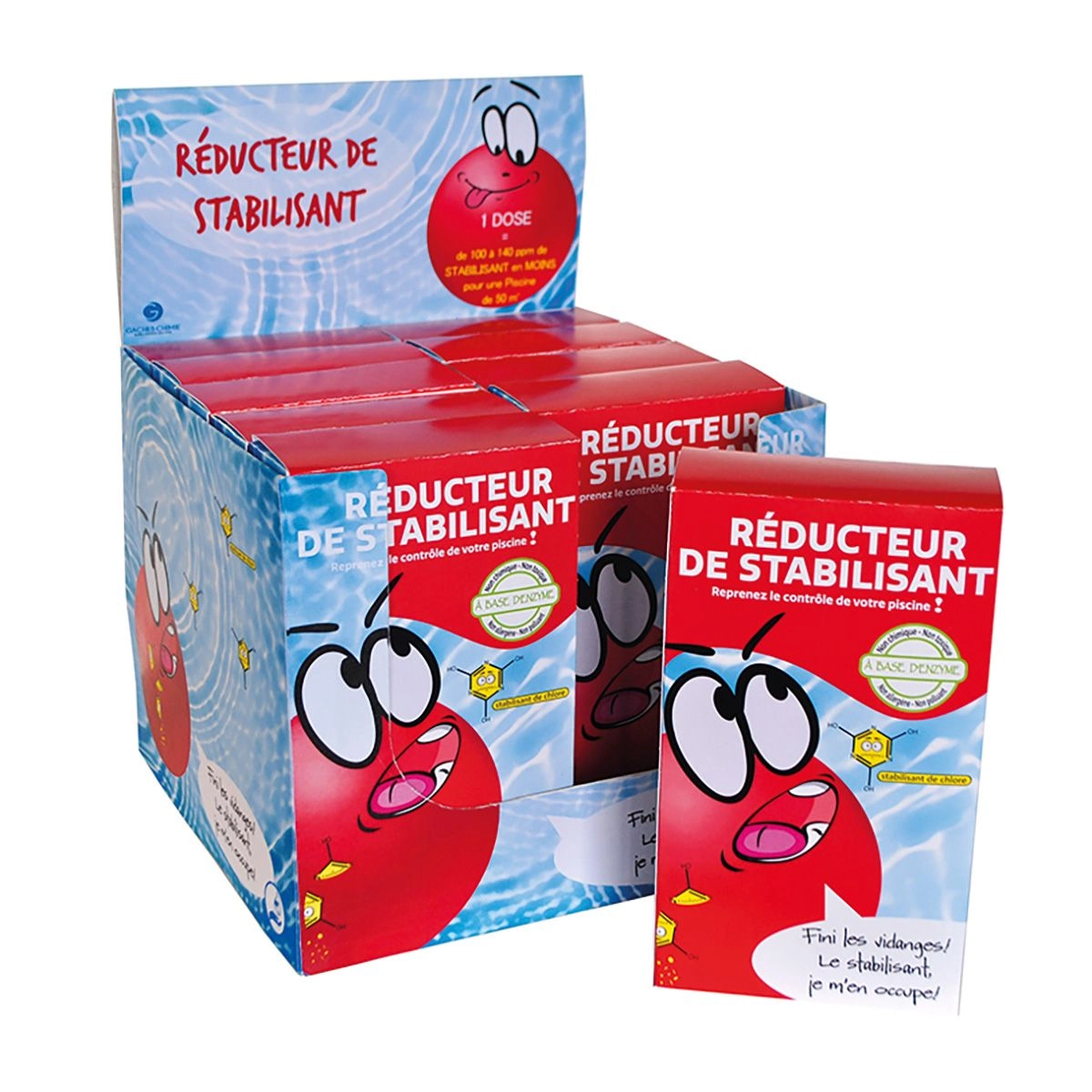 Le réducteur de stabilisant diminue le niveau d’acide cyanurique en toute sécurité, naturellement, et rapidement. Il opère grâce à une technologie de biocatalyseurs avancés : en effet, il élimine le verrouillage du chlore et lui redonne ainsi son pouvoir désinfectant. La molécule va se décomposer par l’enzyme au contact de l’eau : c’est ce qu’on appelle hydrolase et c’est un processus totalement biologique.